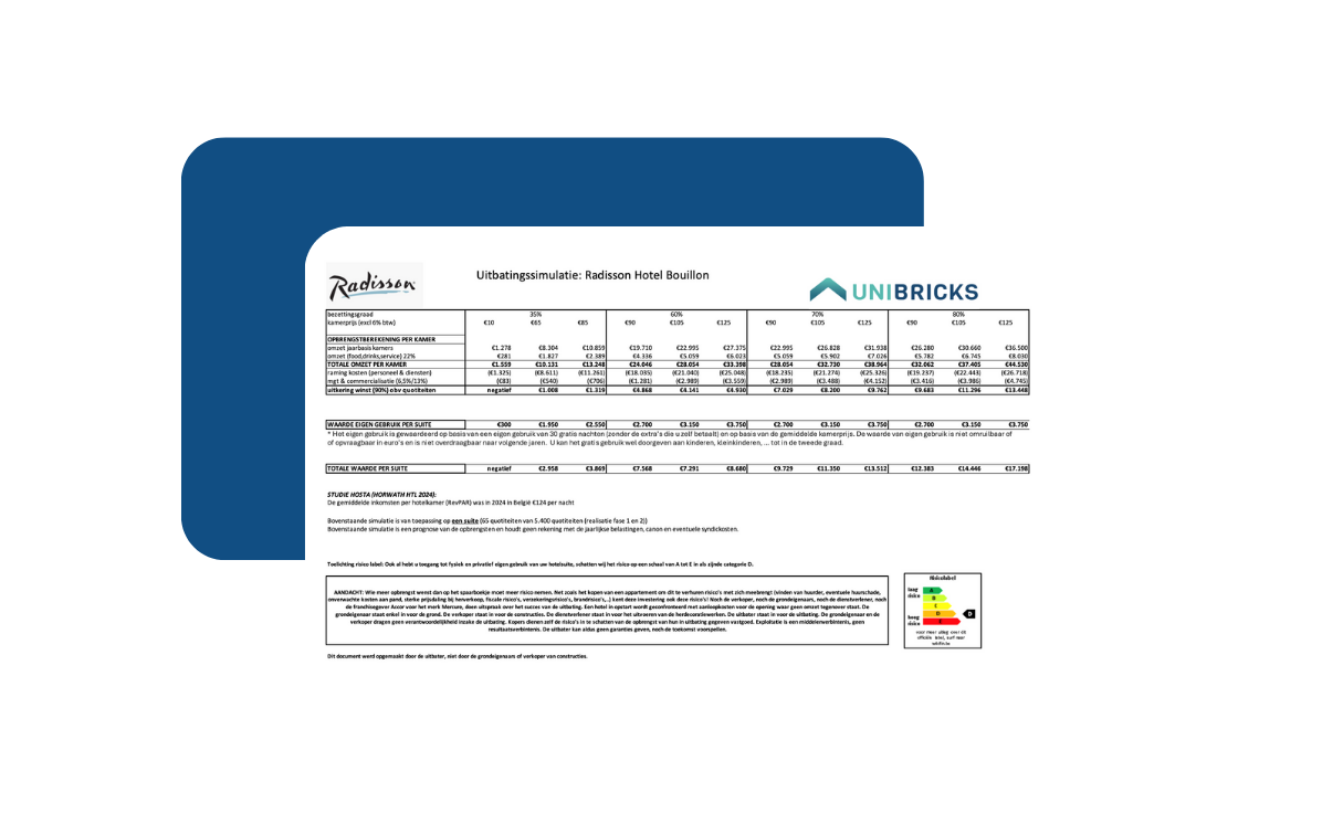 En tant qu’investisseur, vous bénéficiez de la puissance d’une marque hôtelière de renommée internationale. Le Radisson de Bouillon ne porte pas ce nom par hasard : il est géré selon les standards exigeants du groupe Radisson, gage d’excellence opérationnelle, de visibilité mondiale et de fidélisation client.